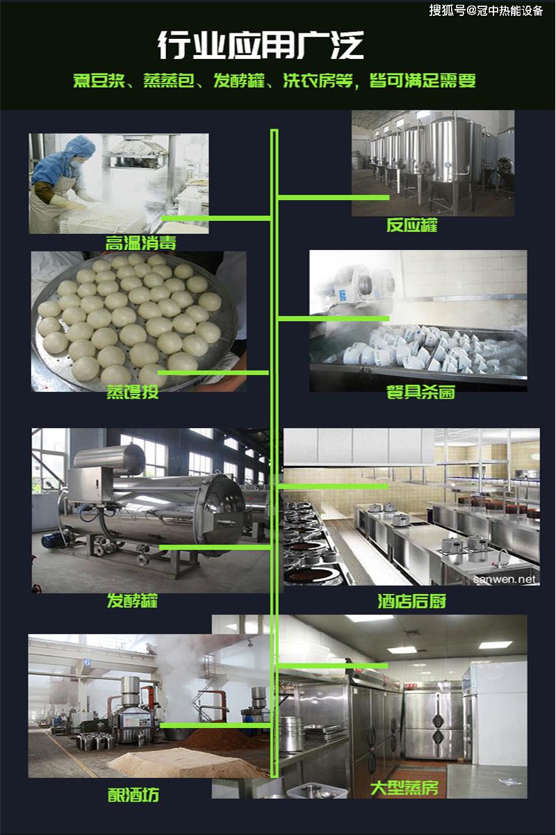 广泛适用于服装、食品、纺织、包装、医药、冶金等行业等需要饱和蒸汽或蒸汽供热的单位。