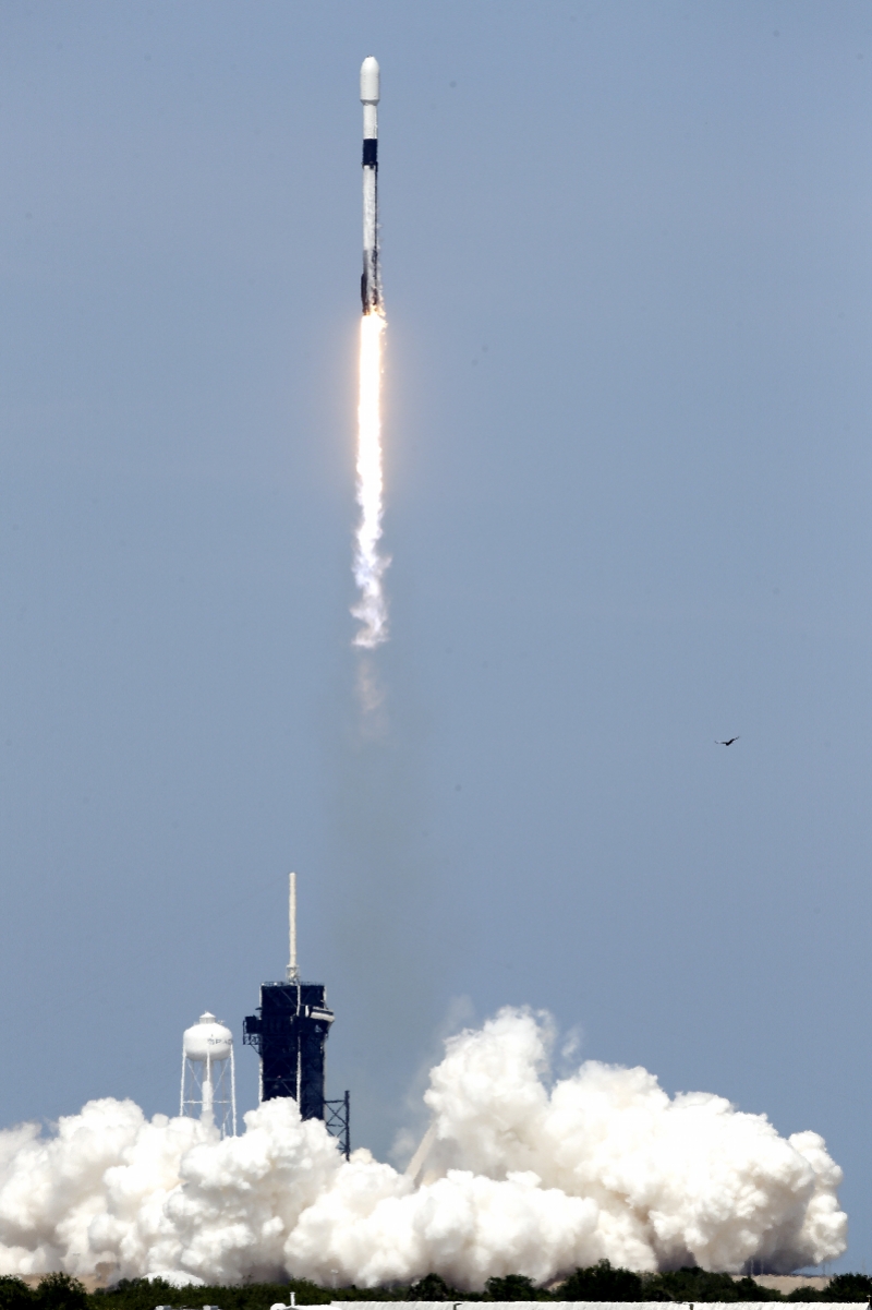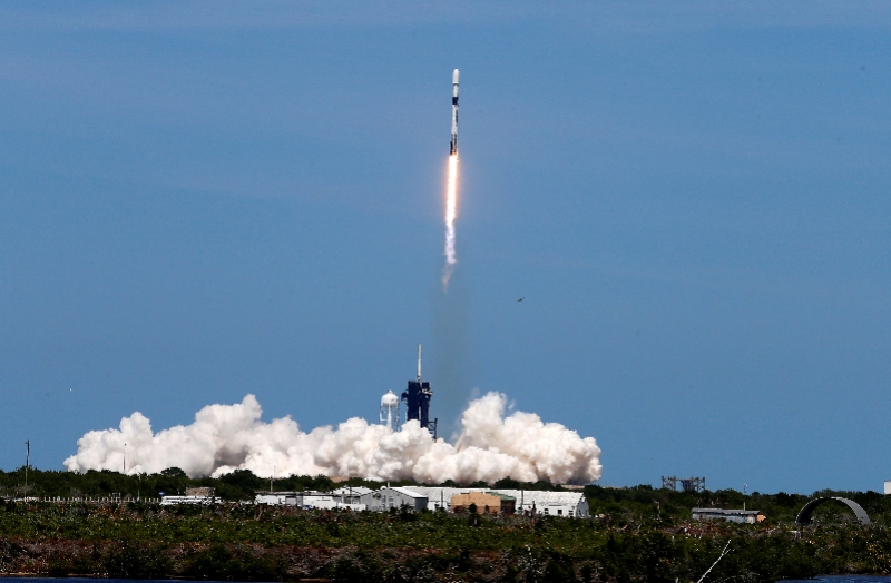 4月22日,“猎鹰9”火箭从美国佛罗里达州卡纳维拉尔角空军基地升空。美国太空探索技术公司22日用一枚“猎鹰9”火箭将“星链”计划第7批60颗卫星送入太空,继续搭建全球卫星互联网。 新华社/路透