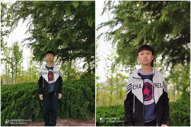 人像模式考验的是手机虚化效果,毕竟如果虚化过度,照片上则会丢失一些细节,通过打开荣耀30 Pro和小米10 Pro的人像模式,笔者发现荣耀30 Pro的人像模式下,取景范围更大一些,而小米10 Pro则会拉近人脸部分,风格上完全不同,不过在细节的保留上两者算是半斤八两。