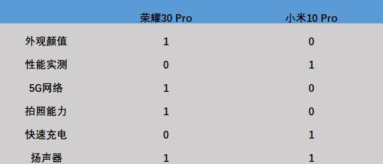 说了这么多,也该给大家做一个总结了,本次的对比从外观、性能、拍照、充电、扬声器、5G网络等多个维度对大家进行了剖析,而荣耀30 Pro和小米10 Pro双方在对比过程中也是互有胜负,且两者的硬件水平都是目前市面上旗舰机的水准,对于此次对比的结果笔者列了一个图表,大家一眼就能得知最终成绩。荣耀30 Pro在外观、5G、拍照上胜出,小米10 Pro则在性能和充电方面胜出,而扬声器部分打平,最后荣耀30 Pro得分为4,小米10 Pro得分为3,综合来看荣耀30 Pro胜出。