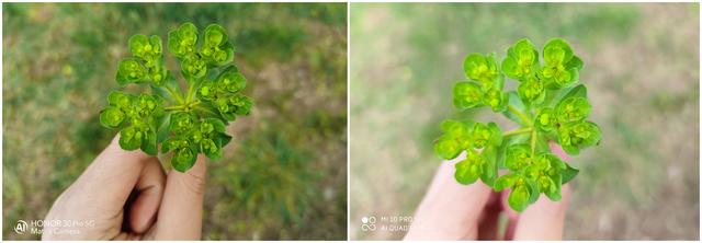 不过在微距方面笔者对于小米10 Pro的表现真得很诧异,从下面的两组样张中我们可以看到,荣耀30 Pro的颜色偏向真实,色彩更浓郁,而小米10 Pro的微距样张发白,不真实,笔者当时以为是环境原因,但试拍了N次,样张依旧,微距发白的问题依旧存在,虽然两者在细节上均都有很好的保留,但这样的调色真得太不符合大众的审美了,而笔者也敢直言说在调色上会有很多人赞同笔者的看法。
