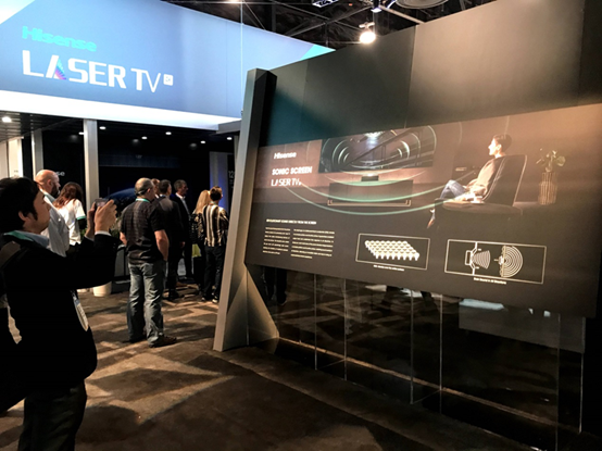 海信激光显示公司研发部总经理钟强介绍说,“海信全声屏激光电视88L5V,应用自主研发的声学软件系统,使用蜂巢仿生复合材料作为发声载体,在88吋激光电视屏幕上均匀排布着10万多个振动发声单元,这种特殊结构设计确保了所有声音皆从屏幕中实时发出,声音和图像的定位感都清晰准确,声音在画面中也有迹可循。”