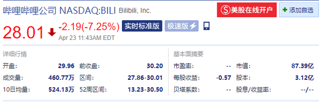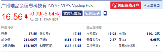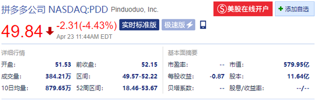 4月23日晚间消息,多只热门中概股下跌。截止发稿,哔哩哔哩跌7.25%,唯品会跌超5%,拼多多跌4.43%,阿里巴巴跌超1%。