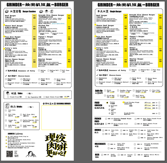 吴佳俊经营的“绞肉机汉堡”在上海有4家直营店,因为注重堂食业务,所以选址都是在核心商圈的商场内。汉堡单价处于38~85元之间,属于西式快餐店的“消费升级”型产品,午餐时段门店内基本没有空位,而客群主要是附近写字楼里的上班族。