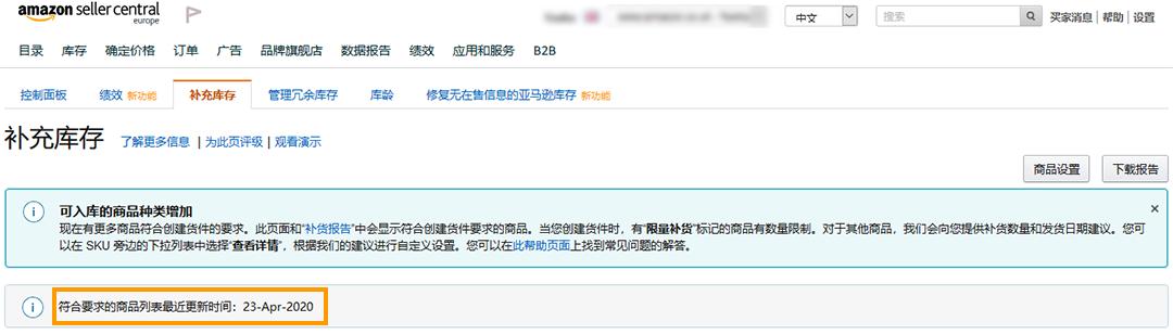 亚马逊会定期更新此列表。现在我们已经在“补充库存”页面上添加了商品列表更新日期,以便您查看我们最后更新该列表的时间。我们建议您根据您的业务审核周期查看“补充库存”页面或“补货报告”,以便查看是否有任何新的商品可以创建货件。