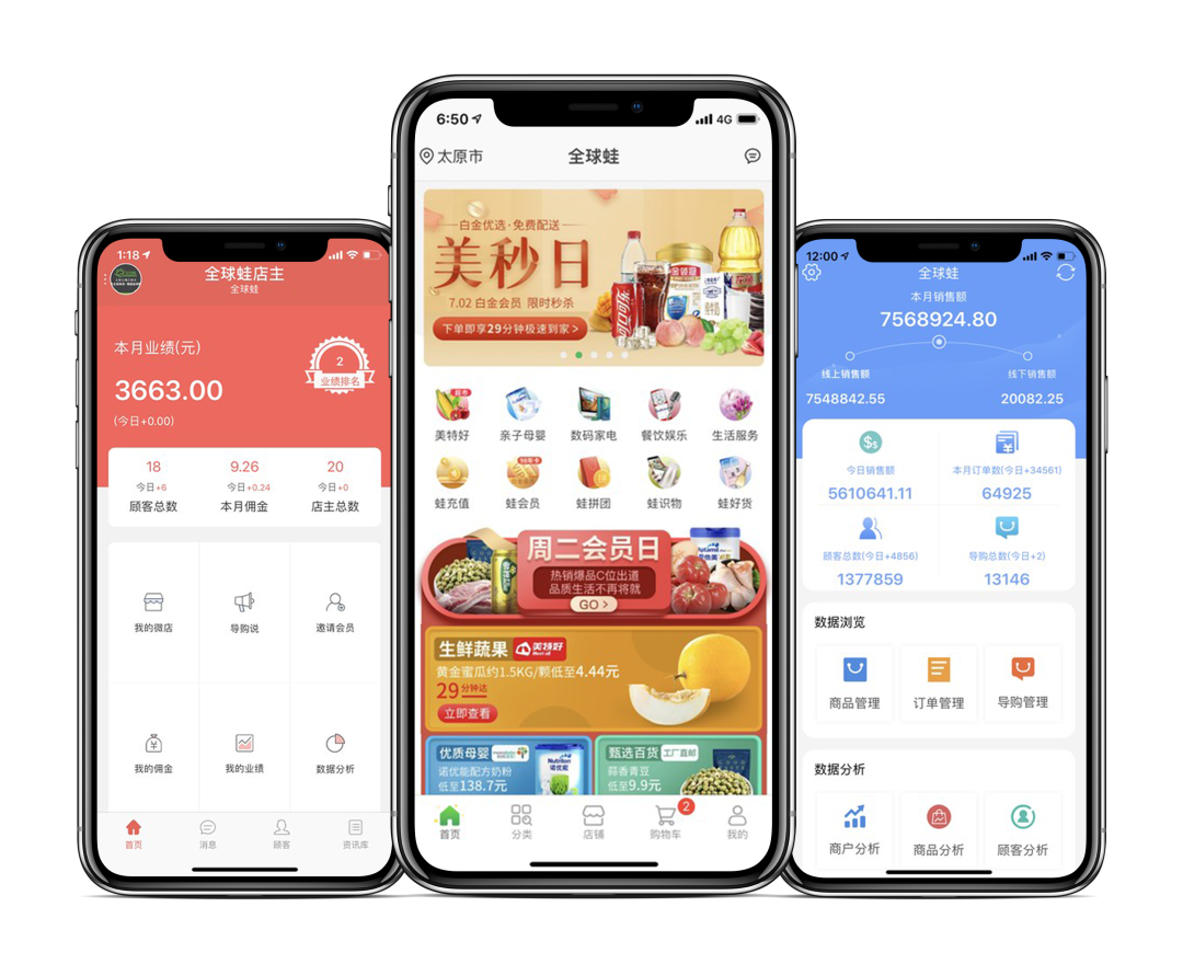 全球蛙不仅对山西11个地市的龙头商超免费提供全渠道数智化解决方案,还立足山西,走向全国,与广西、福建、云南、武汉等城市的区域连锁商超达成战略合作,为其免费定制专属APP,共享数智化新增长。未来五年,全球蛙将为1000家区域生鲜超市提供免费专属APP和全渠道数智化整体解决方案,助力生鲜超市实现全渠道新增长。