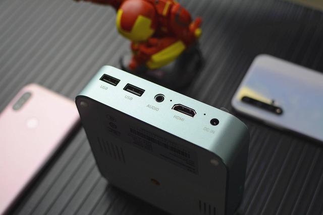 虽然这款投影仪的体积很小,但是在接口上这款投影并没有进行简配,配置了两个USB接口,同时还配有一个AUDIO接口和一个HDMI OUT的接口。这给想外接设备的用户,提供了硬件支持。USB可以在用户没有网络的情况下,进行外接设备播放视频、图片、音乐等。