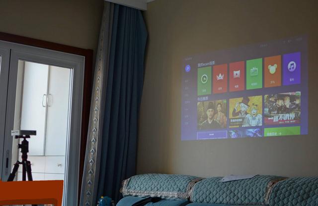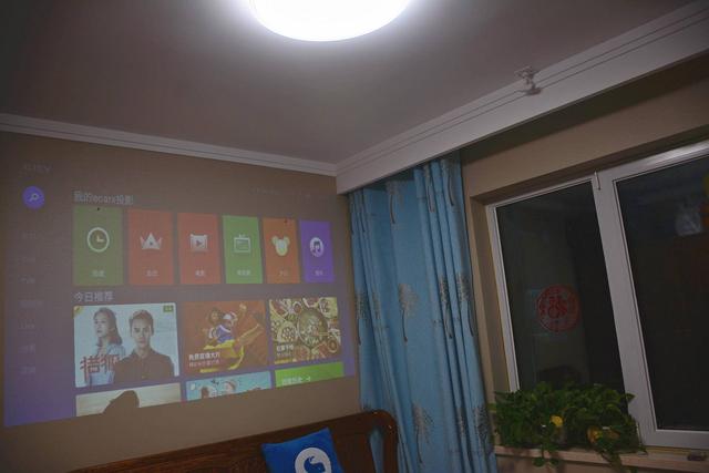 同样的评测环境,在把投影仪拿到房间里之后,不遮挡窗帘的情况下,投影仪的表现比较有惊喜。最近我评测了一款投影仪,其流明标注是E2的四倍还多,但实际测试却没有这款投影仪效果好。