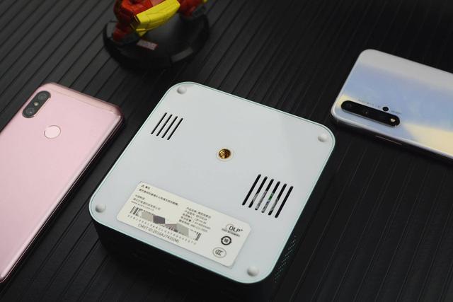 而机身的底部设计了三脚架的螺旋孔。如果你想追求更优质的外放声音,可以通过外接音箱的方式来扩展投影的音量。