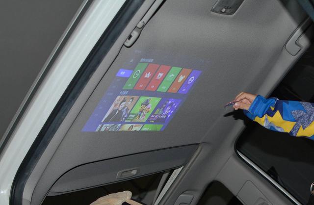下面这张照片是我在车里拍的,把车座放倒,然后躺在车里看电影,也会是一个不错的点子。另外,拍照片的时候我用了闪光灯,大家可以看看,在闪光灯开启的情况下,投影仪的投射效果依然不错。