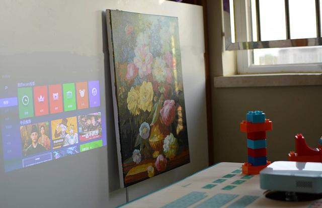 上面我也提到了这款投影仪的流明,虽然只有200ANSI流明,但其在灯光下的表现依然抢眼。我将自家的灯调节到最亮之后,投射画面依然清晰可见,这对于一款微型投影仪来说,可以说是不错的表现了。