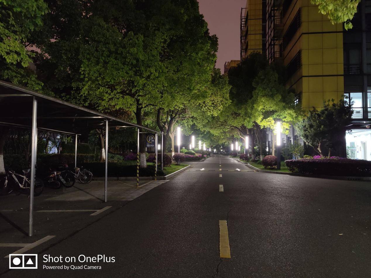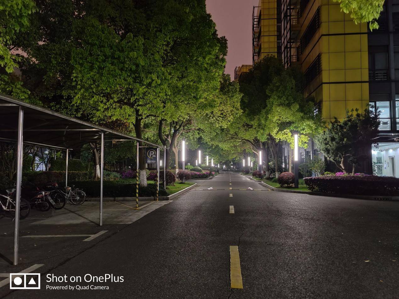 在夜晚的场景下,一加8Pro相机对靓丽的颜色会放大,夜景模式在感光度方面有所提升,整体明亮度较高,可以看清整幅画面拍摄全景内容,同时对颜色和细节还原度度较高,绿色的树叶更加鲜艳青翠。