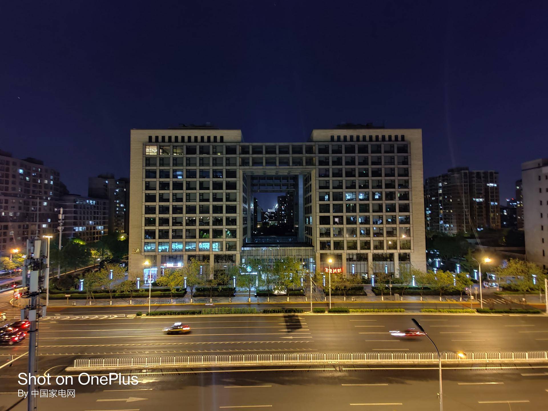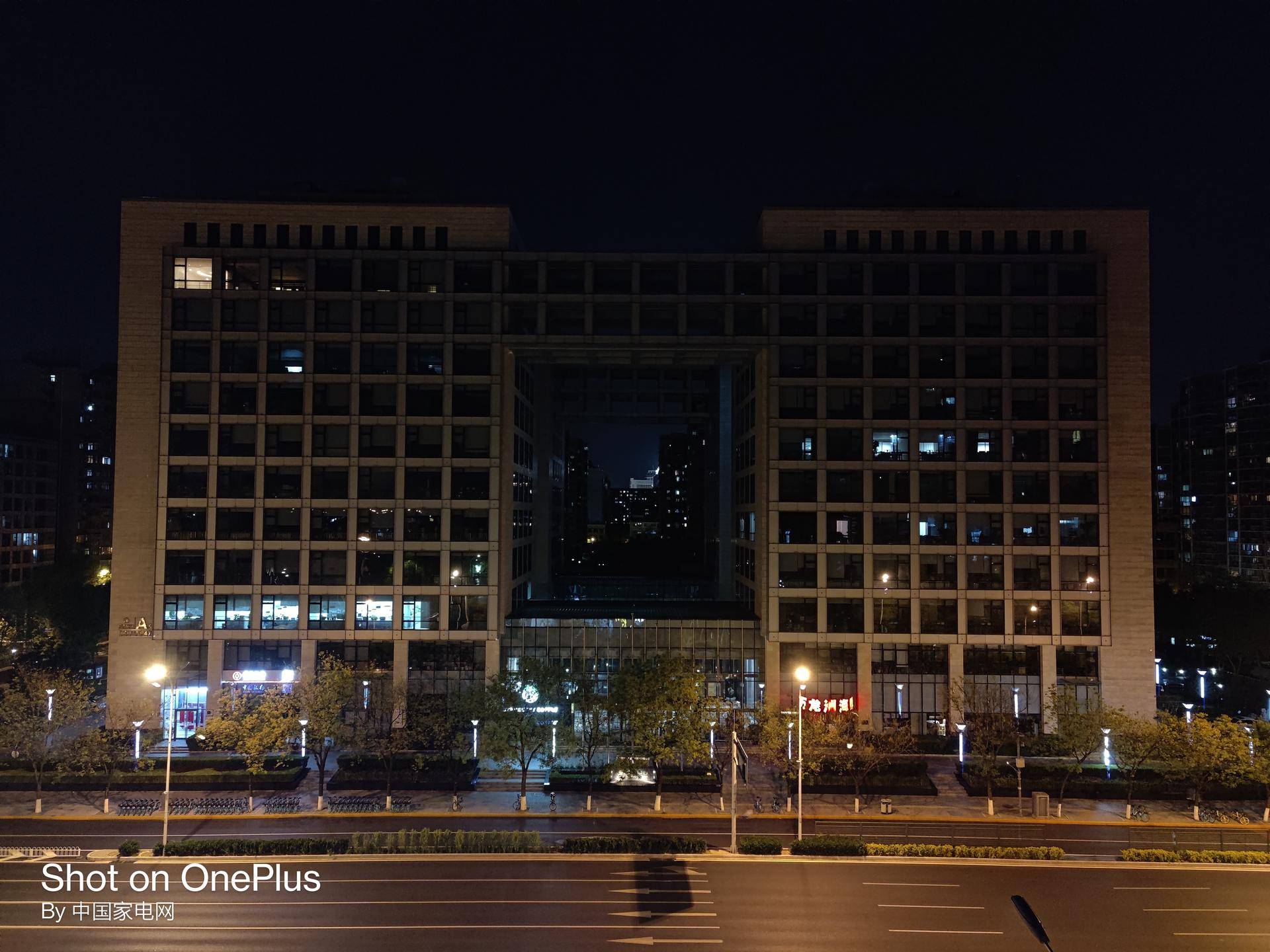 从样张对比中可以看出,差别还是比较明显的,未开启夜景模式,天空呈现黑色,没开广角的模式下黑色更重,更暗。开启夜景模式,整体亮度提升,暗处细节开始显露,透过大楼中空间后面的光源也收入了样张中。