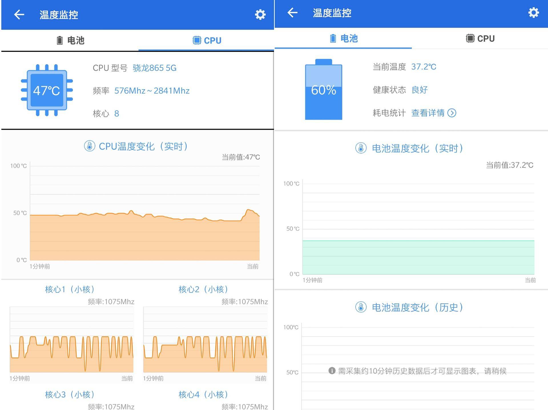 实时检测cpu温度为47度,手感温度略微有点热,但在可接受范围内。