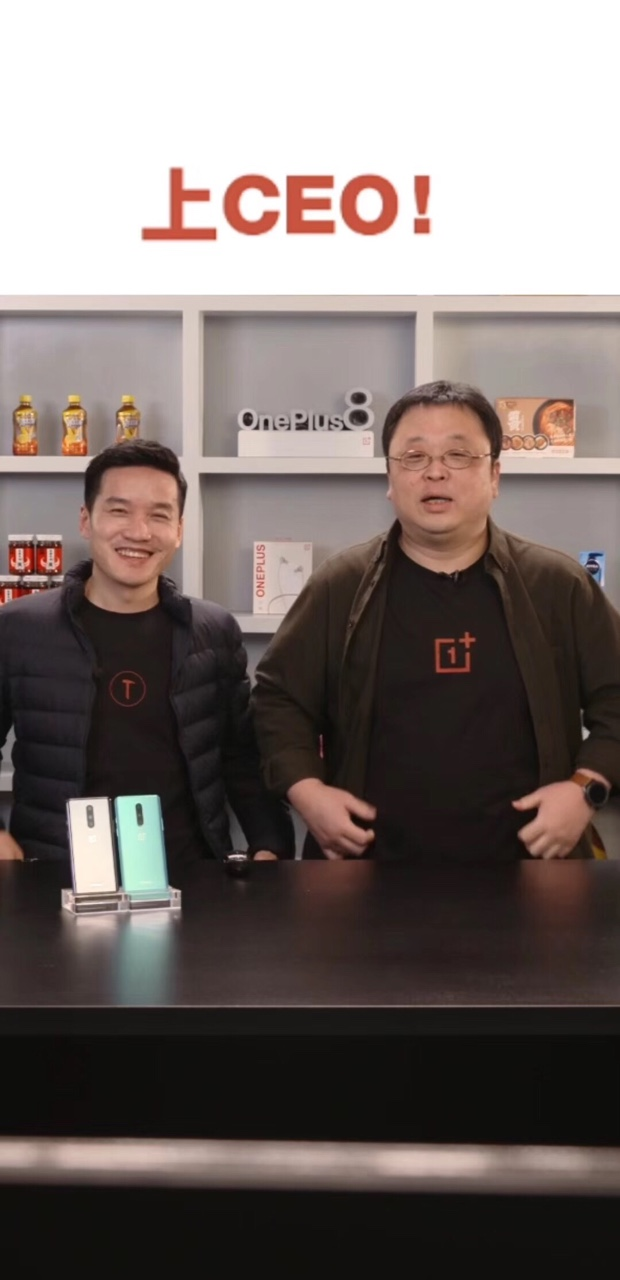 开篇当然要从老罗带货一加8 Pro聊起,在老罗的第三场直播带货中,老罗将在首次直播中的“上CEO”玩法旧戏重演了一波,这次把一加的创始人刘作虎请到了直播间,并且互相穿上了对方做过的手机品牌的logoT恤,让两方粉丝们在评论区集体高潮了一波。