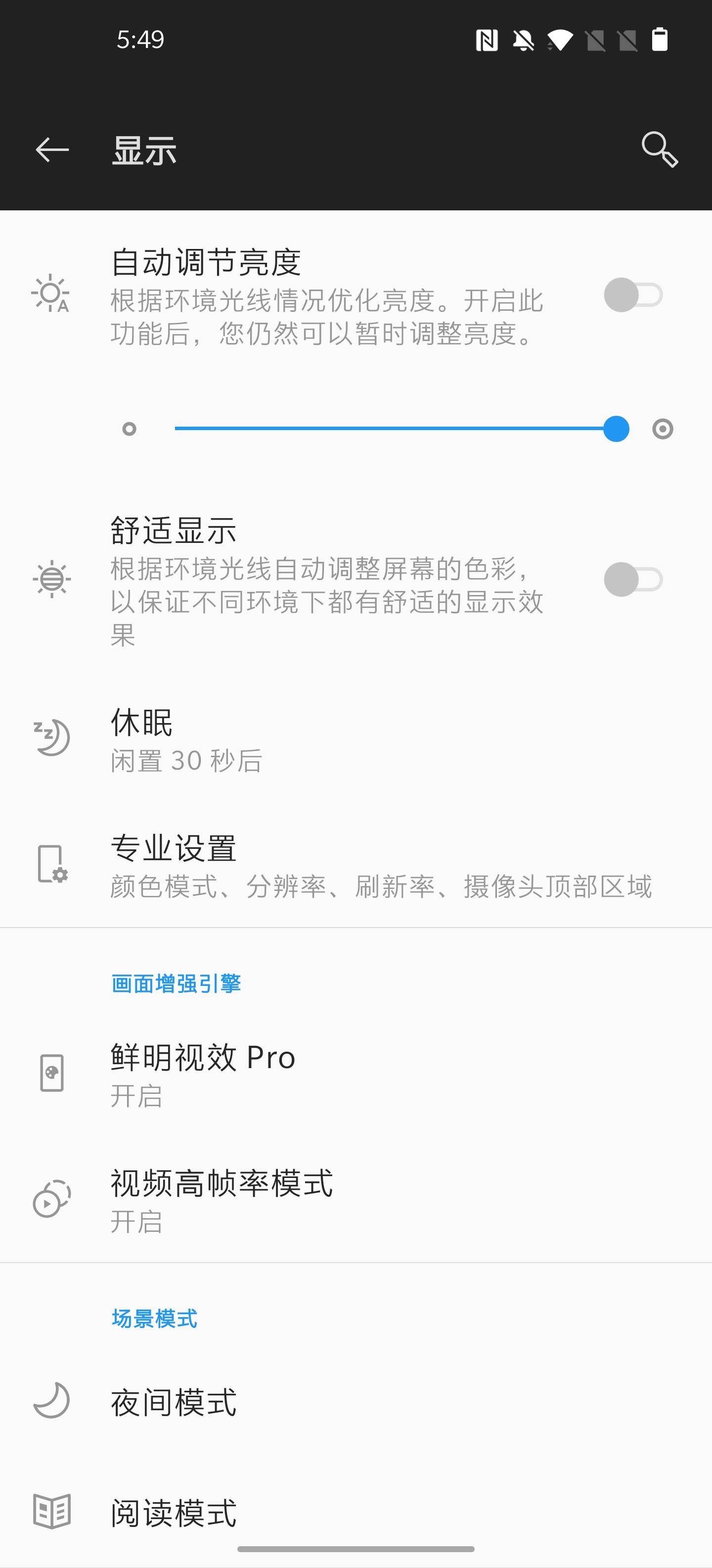 2 、关于DC调光,一加 8 Pro 内置有DC调光功能,可以手动开启。
