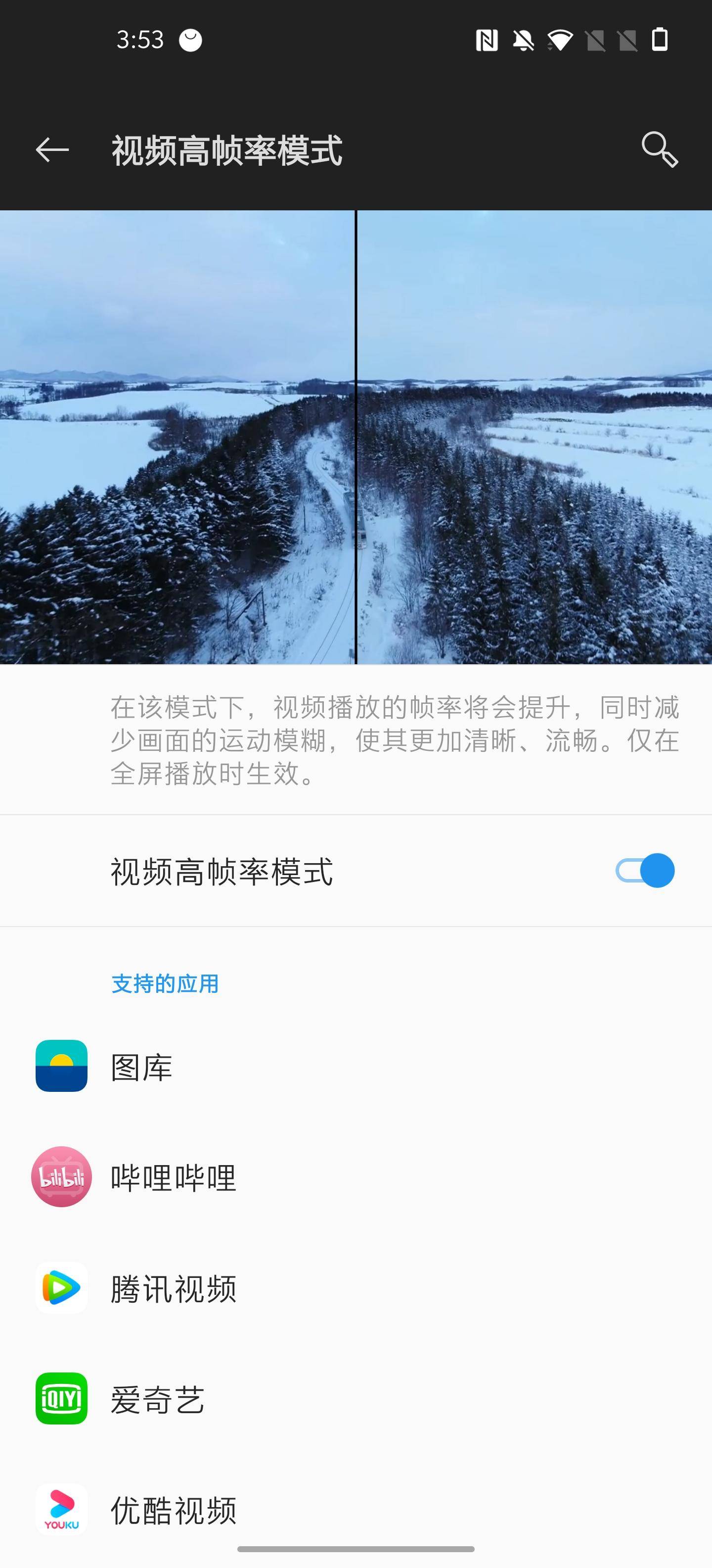 1 、此次张老板将电视中的补帧技术拿来用到了手机视频播放上,通过独立芯片MEMC运动补偿,使视频插帧实现最高120帧,目前支持在线哔哩哔哩,腾讯视频、爱奇艺、优酷视频、本地一加图库等,基本上常用视频平台都包括在内。