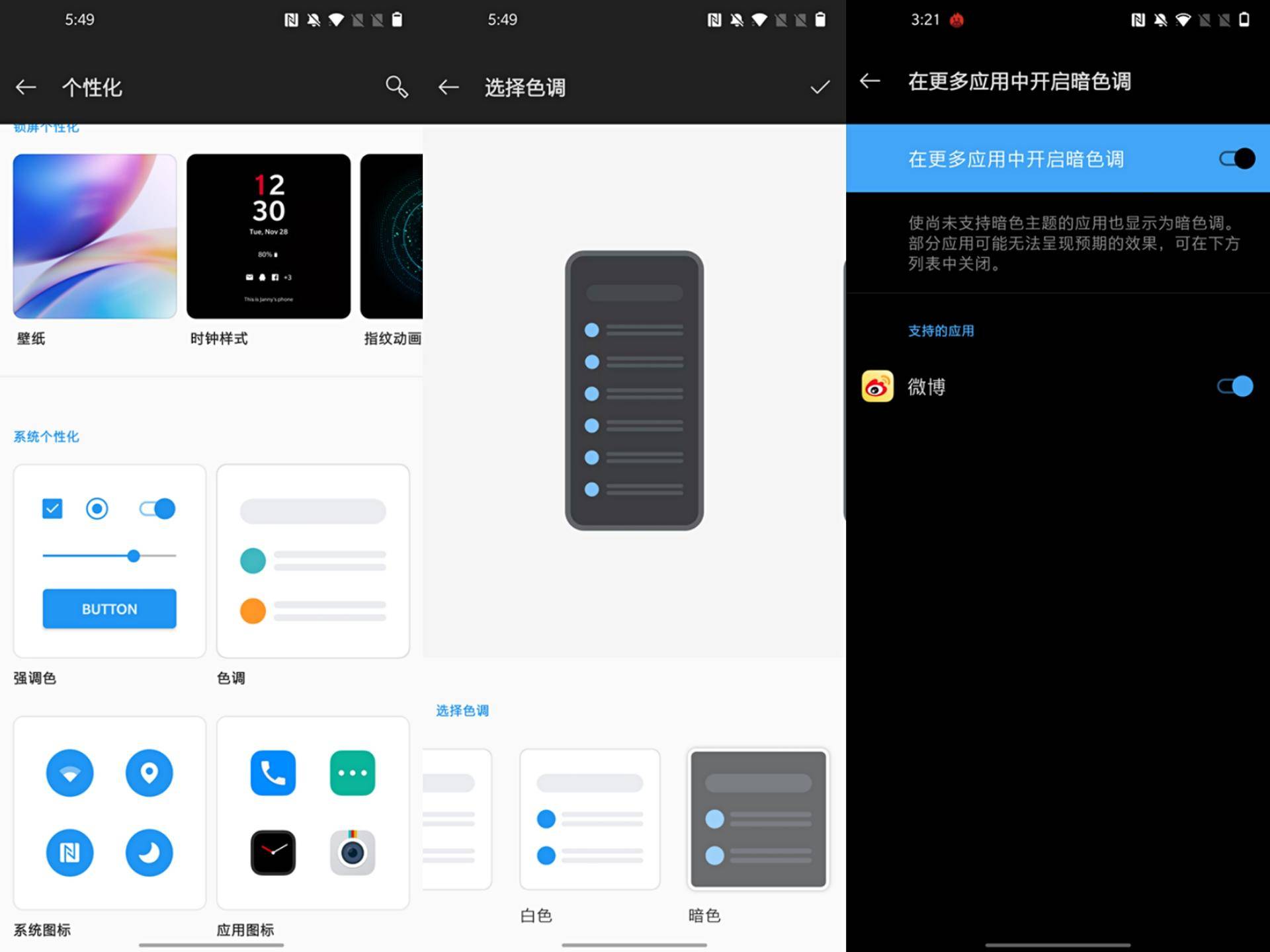 3 、一加功能实验室里的另外一项功能是在更多功能里开启暗色调。