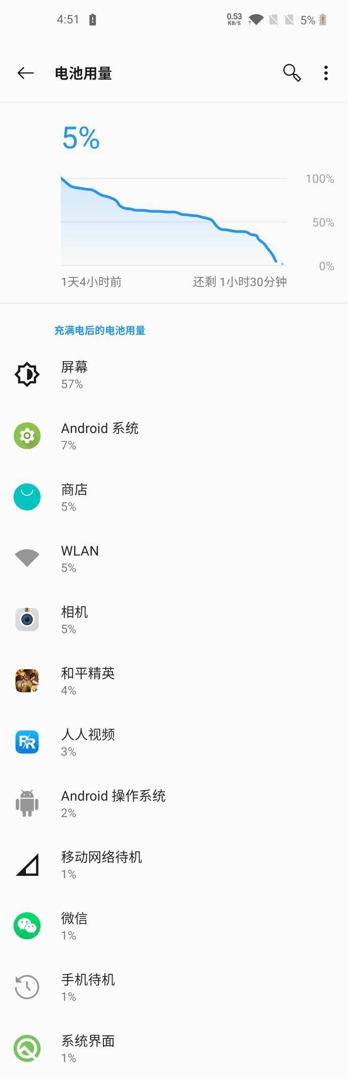 本次测试充满后90%在2K+、120Hz场景下使用,可以看到屏幕依然是“耗电大户”。
