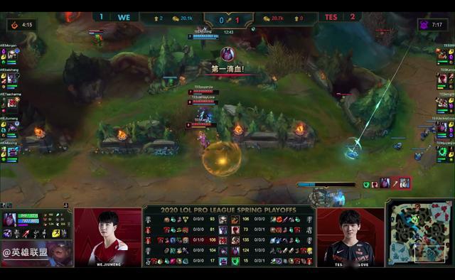 [21:00] 巨魔中路释放峡谷先锋,青钢影侧面杀入,WE直接击杀TES三人,推掉中路高地塔后WE直接开打大龙,复活TP过来的韦鲁斯神来一箭抢下大龙,TES打出一换二后拿下WE中一塔和火龙。
