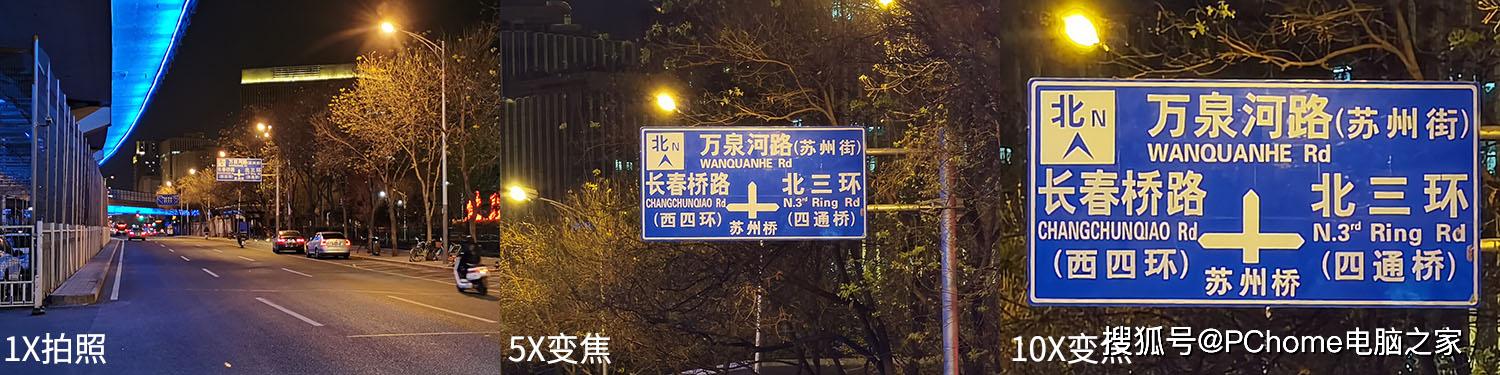荣耀30系列的变焦功能具备全场景支持,它在光线环境良好的环境中可用,在光线受限的暗光环境也有着可用性。在夜晚的环境中实拍样张就是最好的展示,在远景下无从辨认的路牌字迹,在拉近之后就变得清晰可见了。而令我们惊喜的是,即使是变焦拍照,荣耀30系列依旧保持了画面的高质量水准,照片显然是经过了算法处理优化,画面亮度十足背景洁净没有噪点。