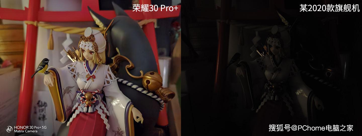 荣耀30系列在硬件模组、防抖算法、界面功能上都做到了无可挑剔,最终才让变焦拍照的体验成为顶级中的顶级。而在变焦拍照之外,荣耀30系列的整体拍照也相当强悍,尤其是定位旗舰的荣耀30 Pro+,该机搭载了IMX700传感器,它有着1/2.8英寸的大感光面积,是当下手机传感器中面积最大的;单像素面积达到了1.22μm,拍照中支持像素四合一技术,等效2.44的大像素,这同样是手机中的极限数据。IMX700传感器的大底,可以获得更多的进光量,与RYYB的滤光设置结合,即使是最极限的暗光环境,荣耀30 Pro+都能成功拍出如同良好光线环境下的照片效果,而这是没有大底传感器的其它手机不具备的拍照功能。