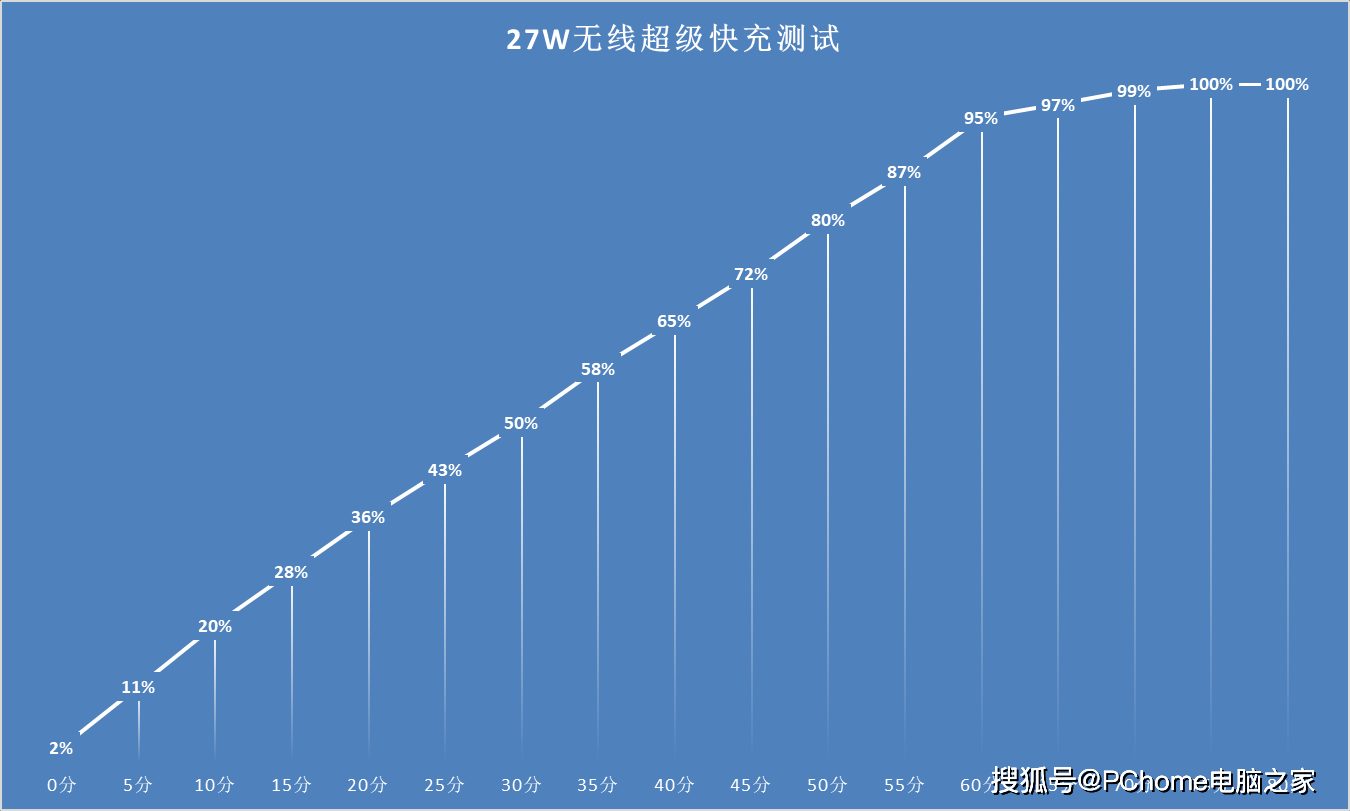 通过实测,荣耀30 Pro+无线快充从2%电量开始,30分钟可以充50%,充满约为70分钟左右。效率非常不错,达到了2020年无线充的行业前列。