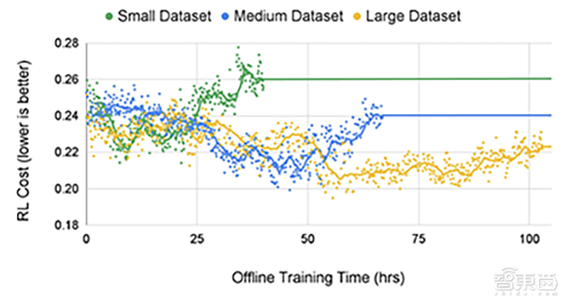 ▲不同大小数据集的收敛情况(每个点显示了训练策略生成的布局代价)