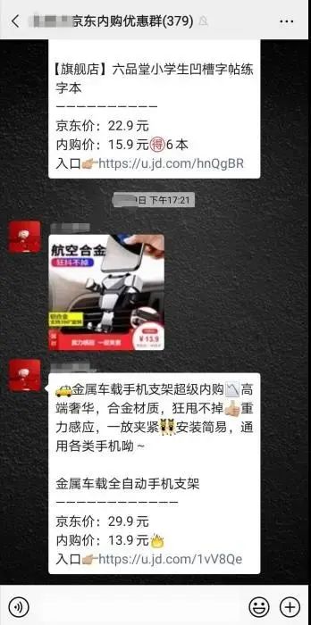 某一京东内购优惠微信群截图。某一京东内购优惠微信群截图。
