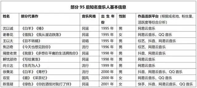 这里面值得注意的是95后和00后群体的崛起。网易云音乐去年底12月披露的数据显示:95后已成为平台原创音乐人主力,在10万名网易音乐人中占比达39.9%;而00后也已崭露头角,占比达20.4%。