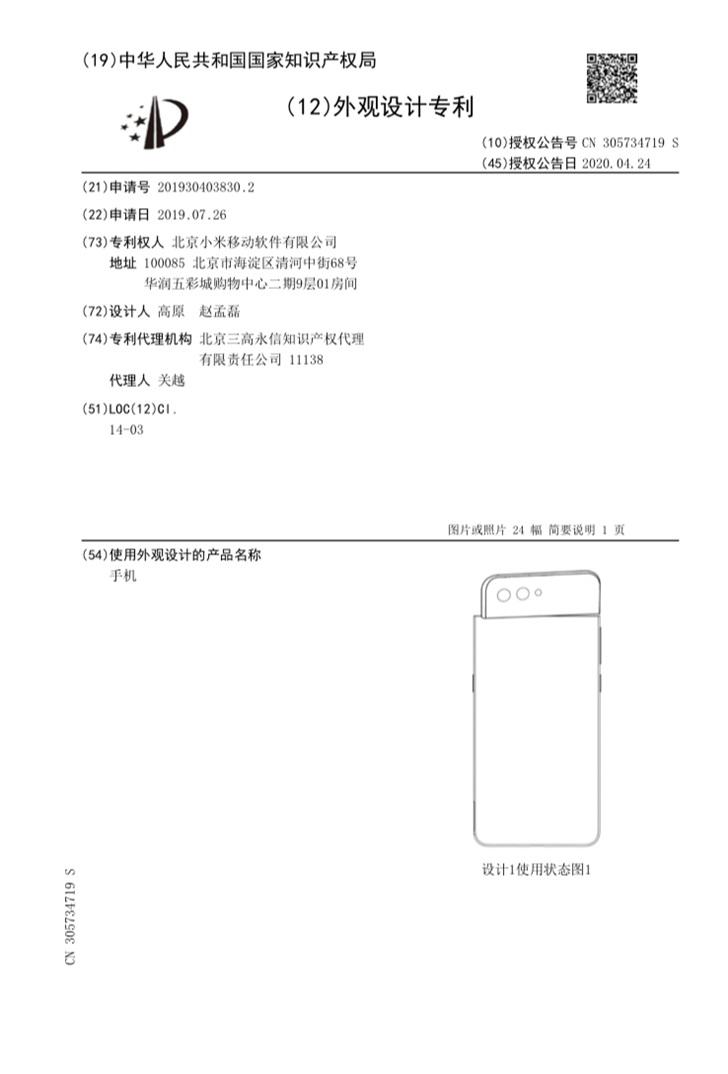 原标题:旋转式后摄模组设计:小米最新手机专利曝光