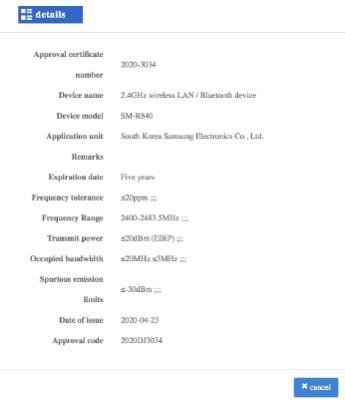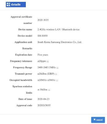 认证文件显示,即将推出的新款Galaxy Watch将支持2.4GHz Wi-Fi和蓝牙,外媒分析称SM-R840和SM-R850将是Wi-Fi版三星Galaxy Watch新品的两种不同的屏幕尺寸版本,而SM-R845和SM-R855可能是支持Wi-Fi + 蜂窝数据的版本。预计三星新款Galaxy Watch将内置330mAh电池,比40mm Galaxy Watch Active 2中的247mAh电池要更大一些。