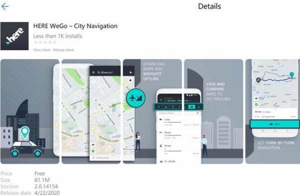 HERE WeGo地图支持100多个国家1300多个城市的导航、定位,支持步行、公交、汽车路线出行建议,以及出租车呼叫等业务。HERE WeGo地图支持离线模式,断开网络连接后也可使用。目前华为用户已可在AppGallery中搜索下载HERE WeGo地图。