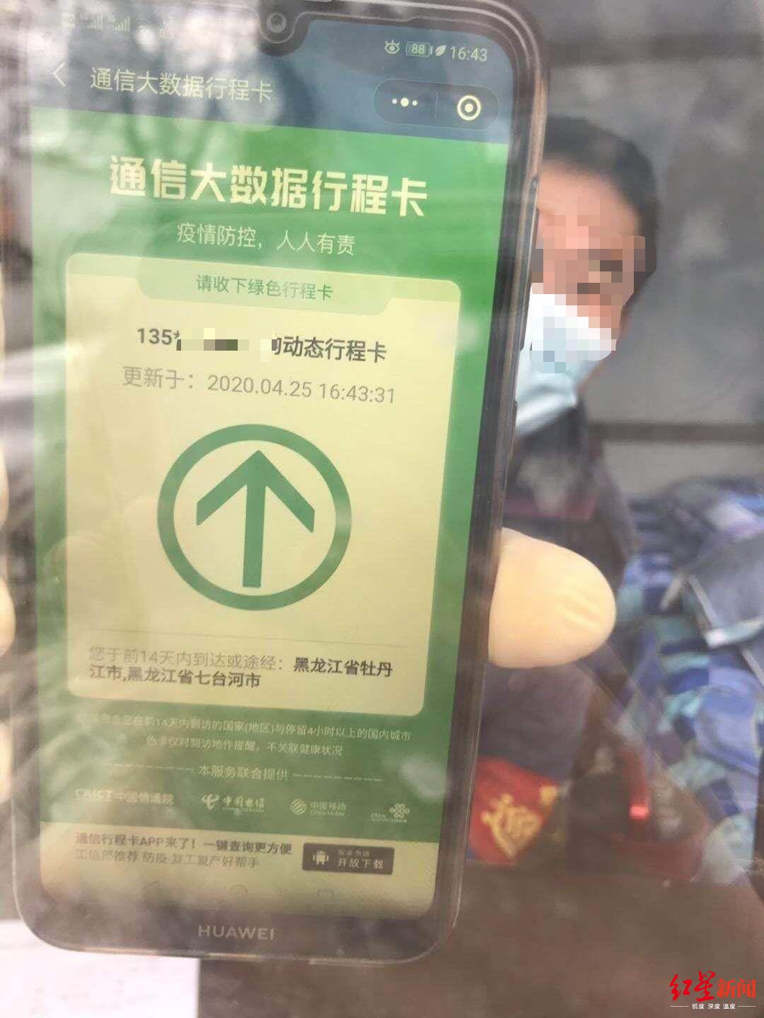 此前,赵先生于4月10日从七台河市的新兴区前往桃山区,在跨区的卡点处扫过“行程卡”。“工作人员和我说,行程显示我去过牡丹江市,但是我没去过。他说这个行程卡有问题,他见过很多从外地回到七台河市的人,他们用移动手机号查询都显示去过牡丹江市。”赵先生说。