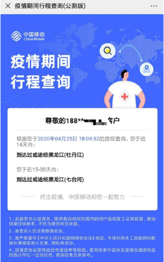 4月25日,黑龙江省七台河市一位居民向红星新闻记者反映,由于中国移动的定位不准,导致多位当地居民的“通信大数据行程卡”显示行程途径疫区,以至于被隔离,无法正常复工复学。