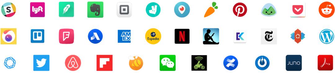 目前有很多手机 App 都有使用 Kotlin 编写,从热门初创公司到世界 500 强企业。下图为一些使用 Kotlin 开发的 App 示意图,其中不乏我们常用软件的身影,如:微信、红板报、印象笔记等。