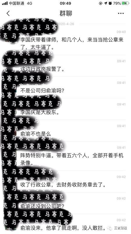另有聊天记录显示,李国庆收了行政公章后,又去收了财务章,当当的行政岗随后报警。而此时俞渝还未到公司上班,她一般三点上班,没人敢拦李国庆。