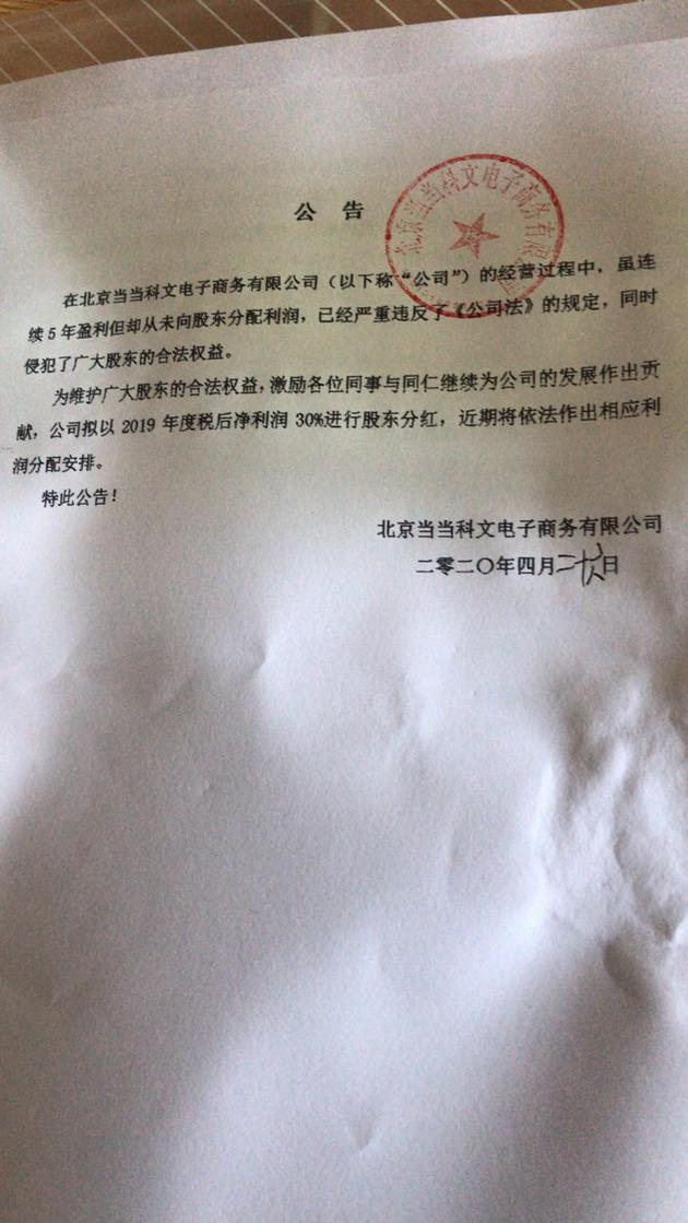 作为当当公司创始人及控股股东,李国庆先生已于2020年4月24日依法召开临时股东会,并作出决议:公司依法成立董事会,由李国庆、俞渝、潘跃新、张巍、陈立均担任董事,同时通过新的《公司章程》。同日,公司依法召开了第一届董事会第一次会议,选举李国庆先生为董事长与总经理。
