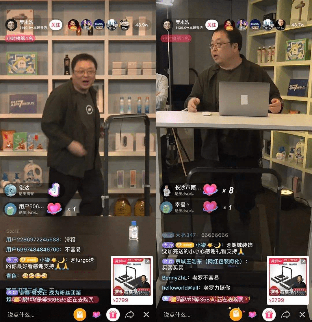 有了“老罗减肥”这一故事线,有了剧情与冲突,老罗直播就变得综艺化,更具观赏性、话题性和连贯性。大家会看到老罗实打实的变化,他实实在在在用带的产品,用了后会发生改变,这跟李佳琦或者薇娅什么都卖是不同的逻辑,对受众影响就会更大,不论是效果还是品牌层面。我认为,“故事线”是老罗直播带货跟薇娅们在玩法上的重要不同。除了减肥,老罗还有脱发、家庭和办公等等故事可以讲。