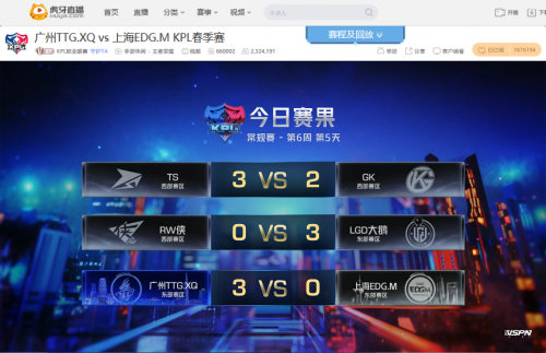 北京时间2020年4月26日,虎牙KPL春季赛常规赛第六周第五日精彩开战。首场比赛TS迎战GK,春之GK再次在巨大领先情况下陷入迷茫,最终TS凭借宝贝双C的完美发挥让二追三拿下关键胜利。第二场RW侠挑战东部王者LGD大鹅,LGD以近乎完美的运营节奏三比零碾压RW侠拿下胜利。第三场广州TTG.XQ迎战上海EDG.M,广州TTG.XQ状态复苏零封老牌劲旅上海EDG.M拿下胜利。