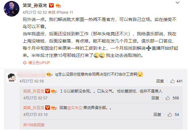 笑笑又提了一嘴IG俱乐部,认为一直以来对队员们还是很不错的,当初自己退役没钱,俱乐部直接多打了半年的工资,让他受宠若惊主动说要取消。