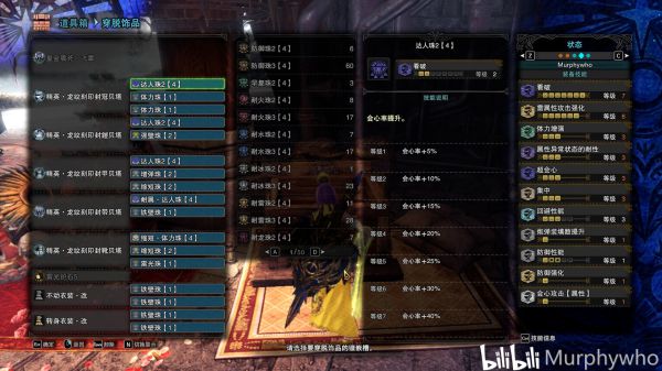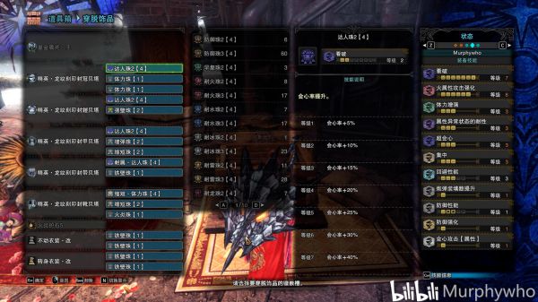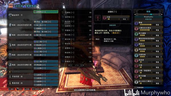 最后分享一套耳塞超解配装,打炎妃虽然输出没有上面那一套高但是再也不怕她吼完放核爆了,而且心眼防强刚刃应有尽有。别的属性的耳塞配装直接换个属性珠子换个武器完事。