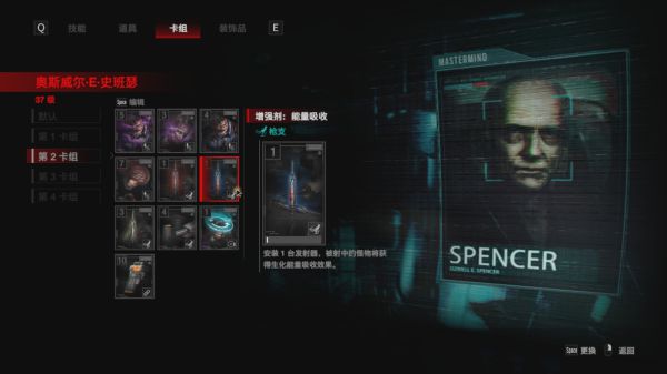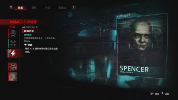 自动技能2当然是选择默认的“充能”。斯宾塞这个角色的强度所在,每次E.I.S互动时增加1格多的生化能量,大量的费用可以支持舔舔这种高费怪的使用同时也能下其他丧尸支援搅屎。