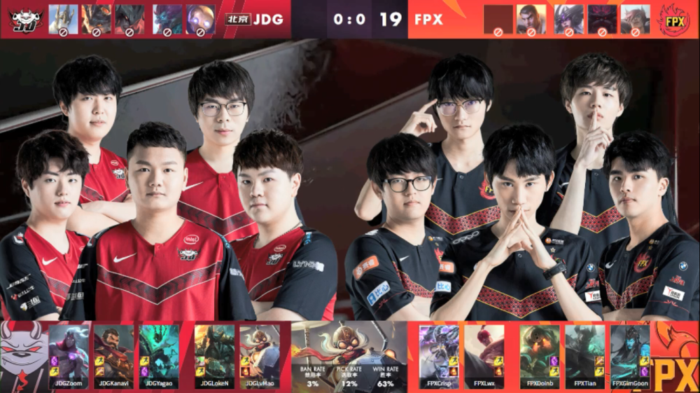 高脚杯,燕尾服,昨夜是上流社会的狂欢。铜雀台,落凤坡,昨夜是凤凰传奇的陨落。昨天傍晚5点开始的FPX对阵JDG的LPL春季季后赛半决赛,以一种谁都没有想到的方式落下的帷幕。在春季赛里保持强大压制力的FPX以0-3被完全体的JDG零封,S9冠军阵容竟然敌不过相较于18年仅仅更换打野的JDG,这一点着实是让很多LPL的粉丝们没有想到的。虽然从最近的比赛来看,JDG这支队伍的确是状态非常的神勇,队伍的磨合也做的非常的出色,特别是上单ZOOM的回归,也是让这支队伍进一步的补强。接下来就让水手电竞饭堂带领大家一起来领略这场非常精彩的BO5。
