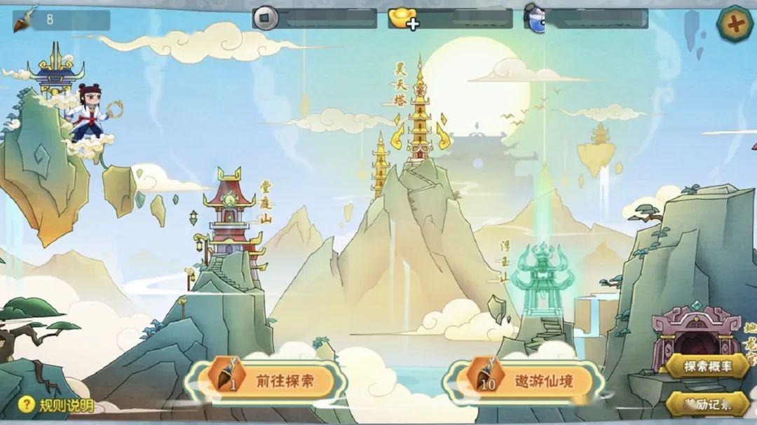 2、探索分为“单次探索”和“遨游仙境”两种方式。
