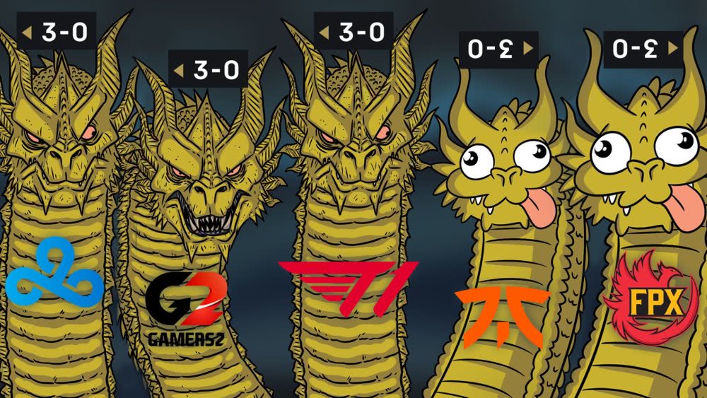 在配图中,FPX以及FNC都取得了反向3:0战绩,而且表情也是亮点。
