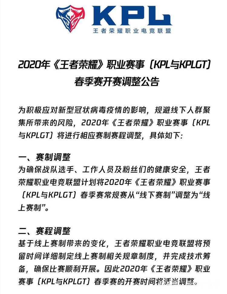 原标题:王者荣耀KPL转战线上!战队选手理解支持,观众质疑公平希望延期