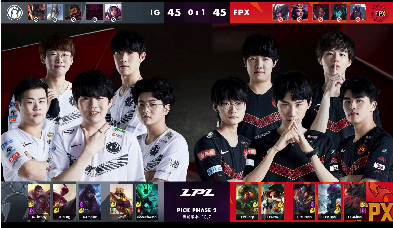 双方BO5第二局开始,蓝色方IG,红色方FPX。