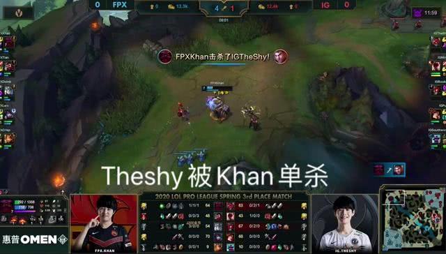 而在4月29日,两届S赛冠军IG与FPX迎来了春季赛的季军争夺战,首局:Theshy惨遭军训IG惨败FPX,宁王上场也没用,Theshy遭Khan单杀,解说纷纷发出感叹,雨童直言IG落败原因,下面我们先来看下这场对战: