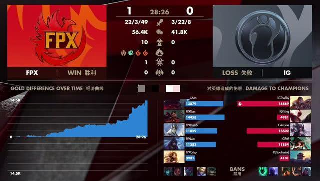而反观IG这边,虽然选出了招牌的对线阵容,但前期Theshy对线激进,多次被军训抓死,还被Khan单杀,完全失去了游戏体验,而宁王上场也没用,相帮Theshy的套路被FPX看穿,自己也没了节奏,最终因为劣势太大,输掉了比赛,但Theshy杰斯虽然死了几乎超鬼 ,但却打出了全场最高伤害,解说也是惊叹。整体来说IG这边今天还是打得太过着急,BP太过依赖对线,没有前排,最终导致了失利!